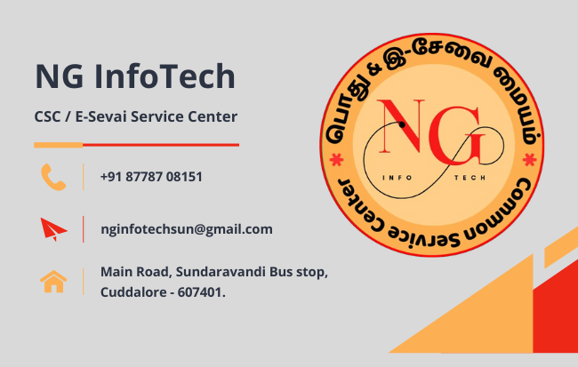 Visit our NG INFO Tech CSC E-Sevai Centre for all your digital service needs
